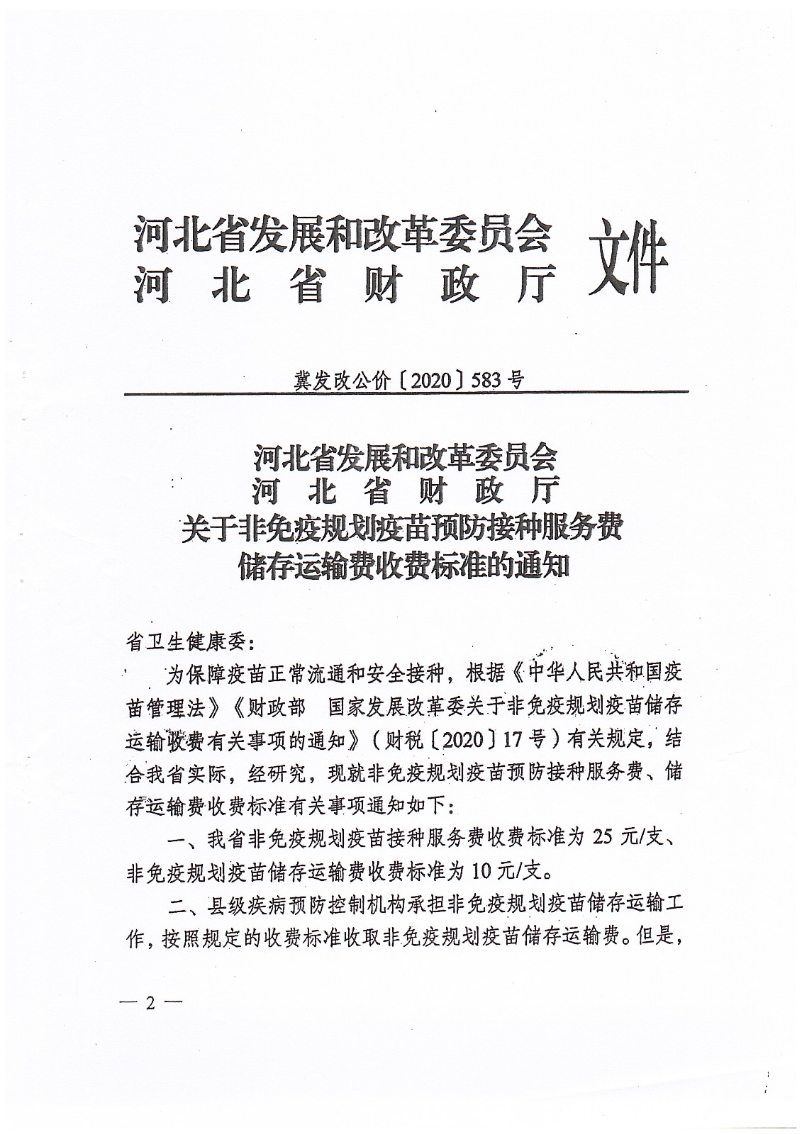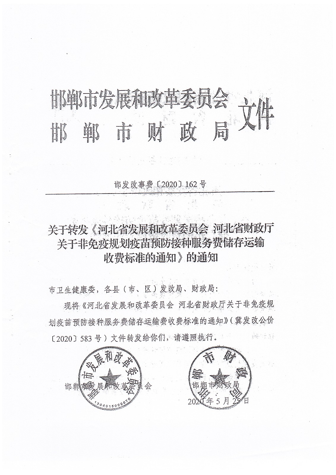 魏县发展和改革局魏县财政局关于转发<邯郸市发展和改革委员会 邯郸市财政局 关于转发《河北省发展和改革委员会 河北省财政厅 关于非免疫规划疫苗预防接种服务费储存运