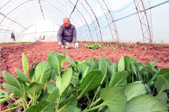 近日,在河北省邯郸市魏县“鲜蔬小镇”后西营村蔬菜大棚内,村民正在种植甘蓝。胡清华 摄